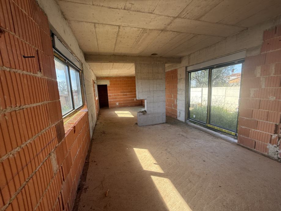 Prodaje se kuća u Kavranu, trenutno pod krovom (roh-bau faza), izgrađena u cigli uz vrlo kvalitetnu gradnju. Objekt ima ugrađenu vrhunsku stolariju i betonirani bazen, što predstavlja veliku prednost i značajno smanjuje buduće troškove završetka. Kuća se prodaje u postojećem stanju.