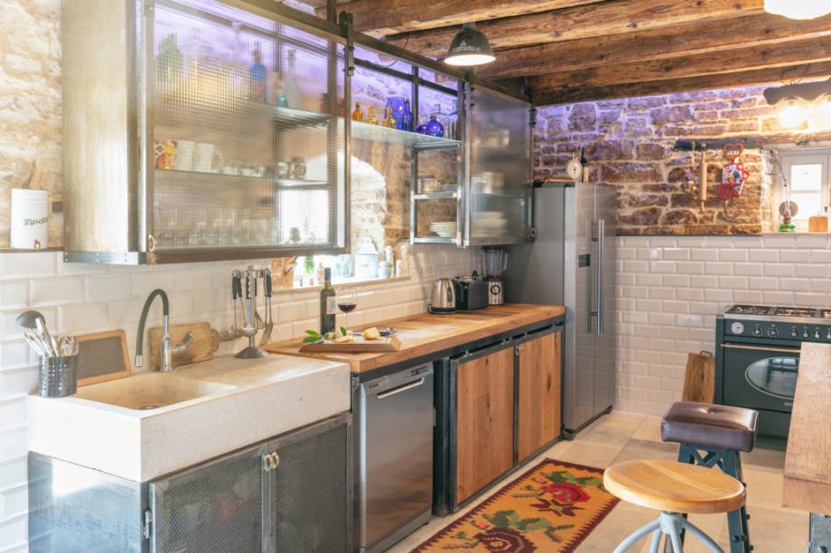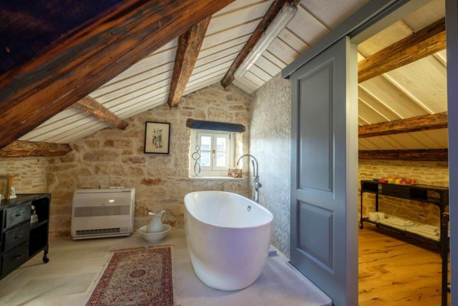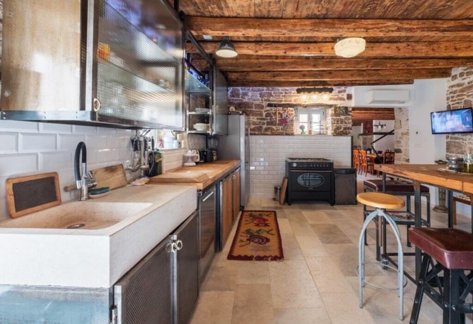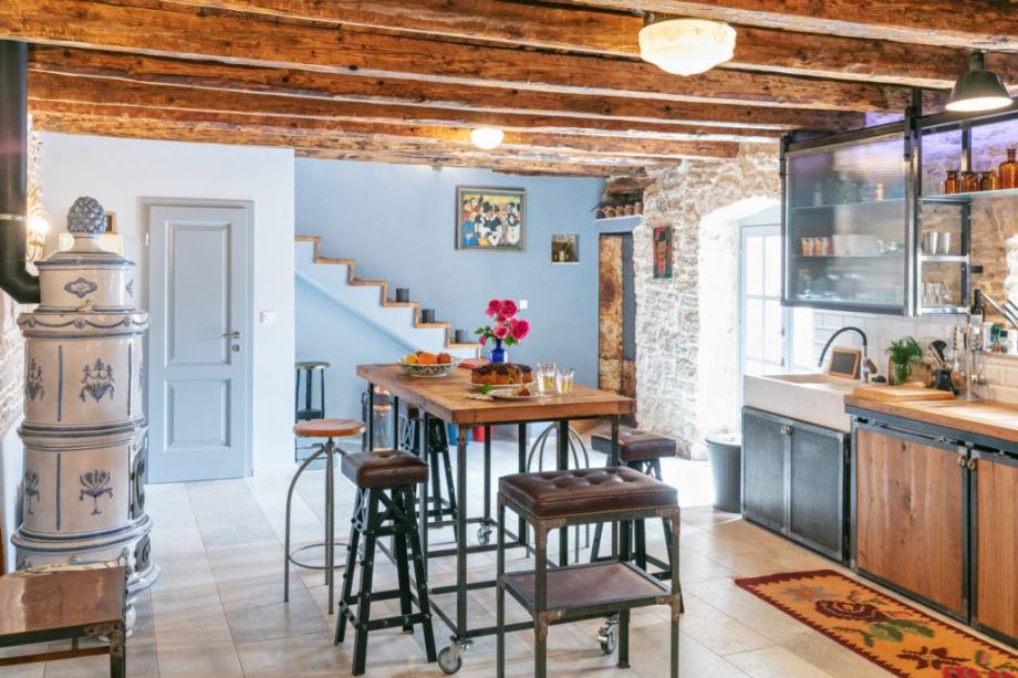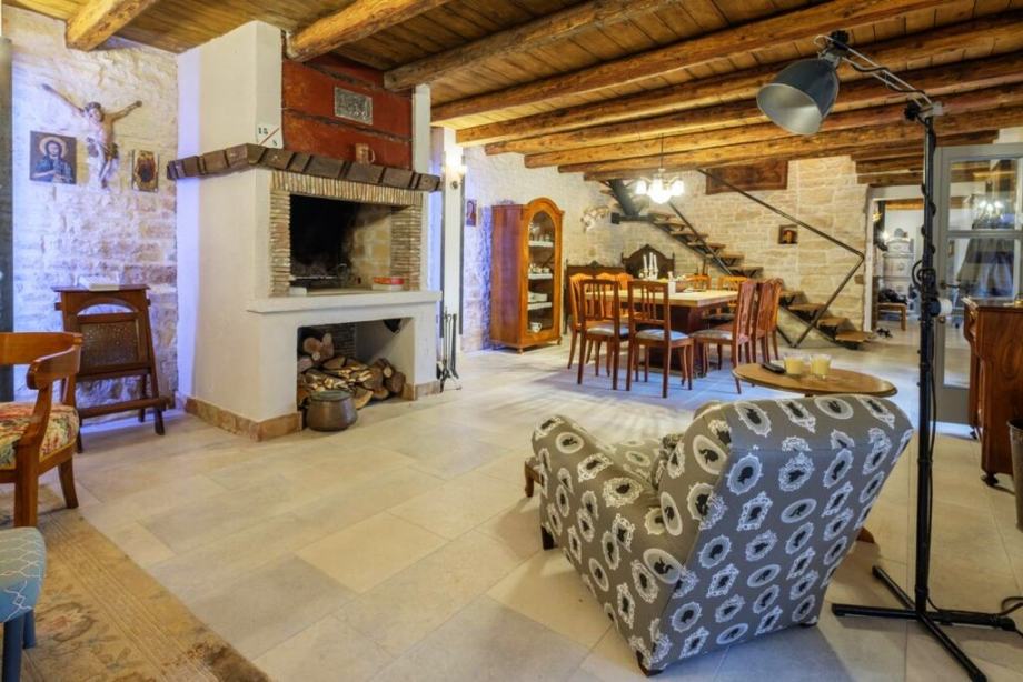 В этом красивом каменном доме в автохтонном стиле сохранена оригинальность, качество материалов (натуральные материалы, дубовые полы, истрийский камень, старинная плитка, изделия из лиственницы).