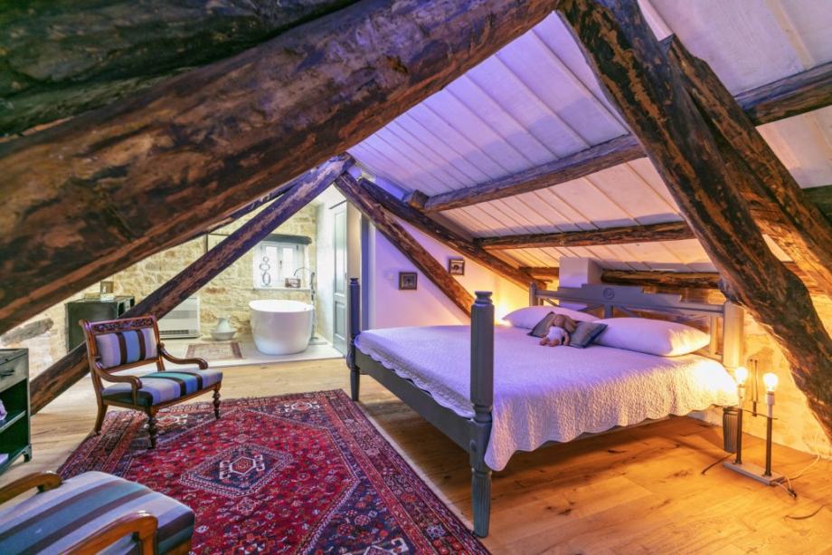 Мансарда: спальня с ванной.