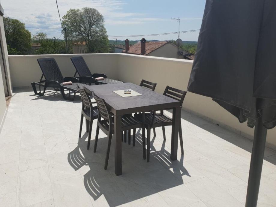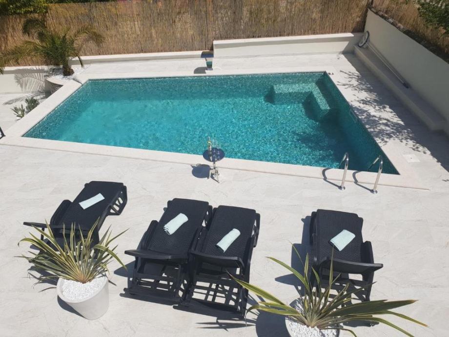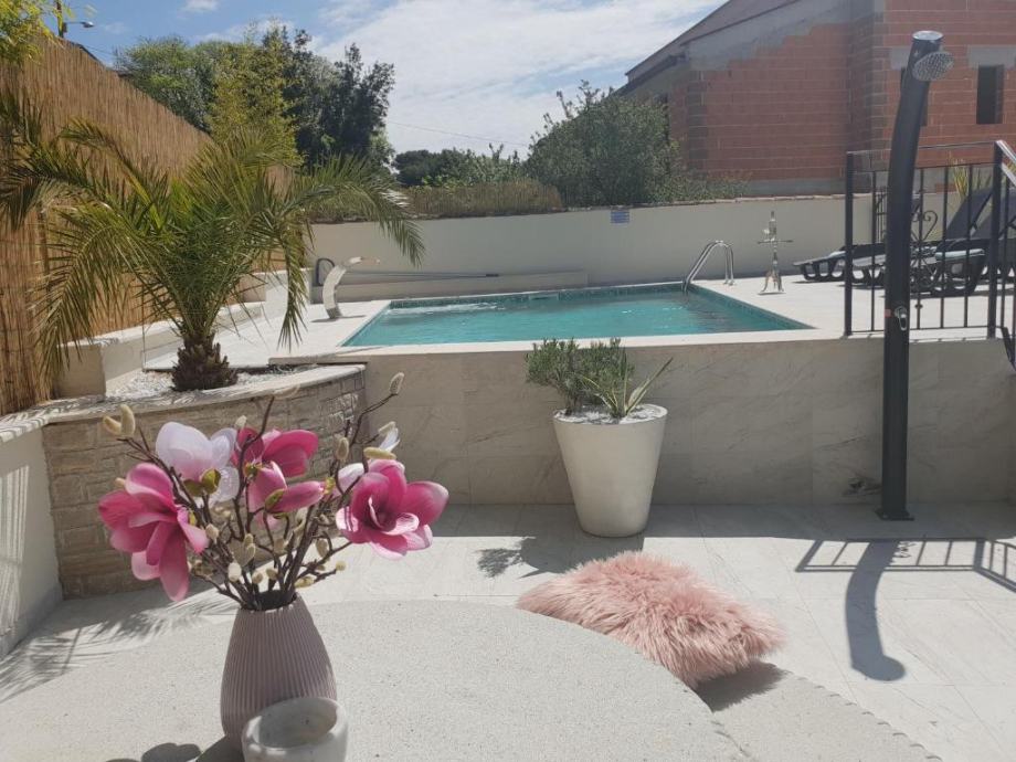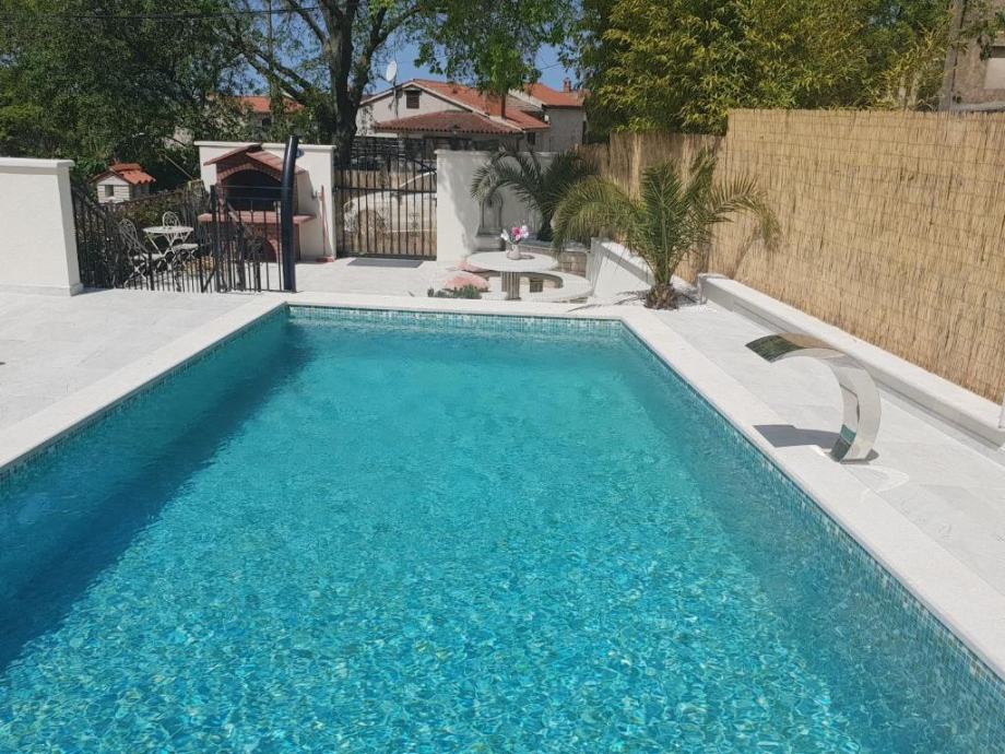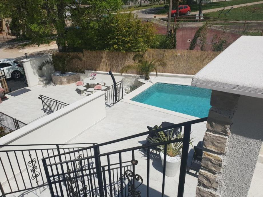 Дом с апартаментами на продажу в Порече. Поверхность здания 400 м2, а сад 900 м2 с открытым бассейном, барбекю, террасой для отдыха. В доме всего три квартиры, две с одной спальней и одна с двумя спальнями и одна квартира-студия. Доступ к зданию осуществляется с дороги.